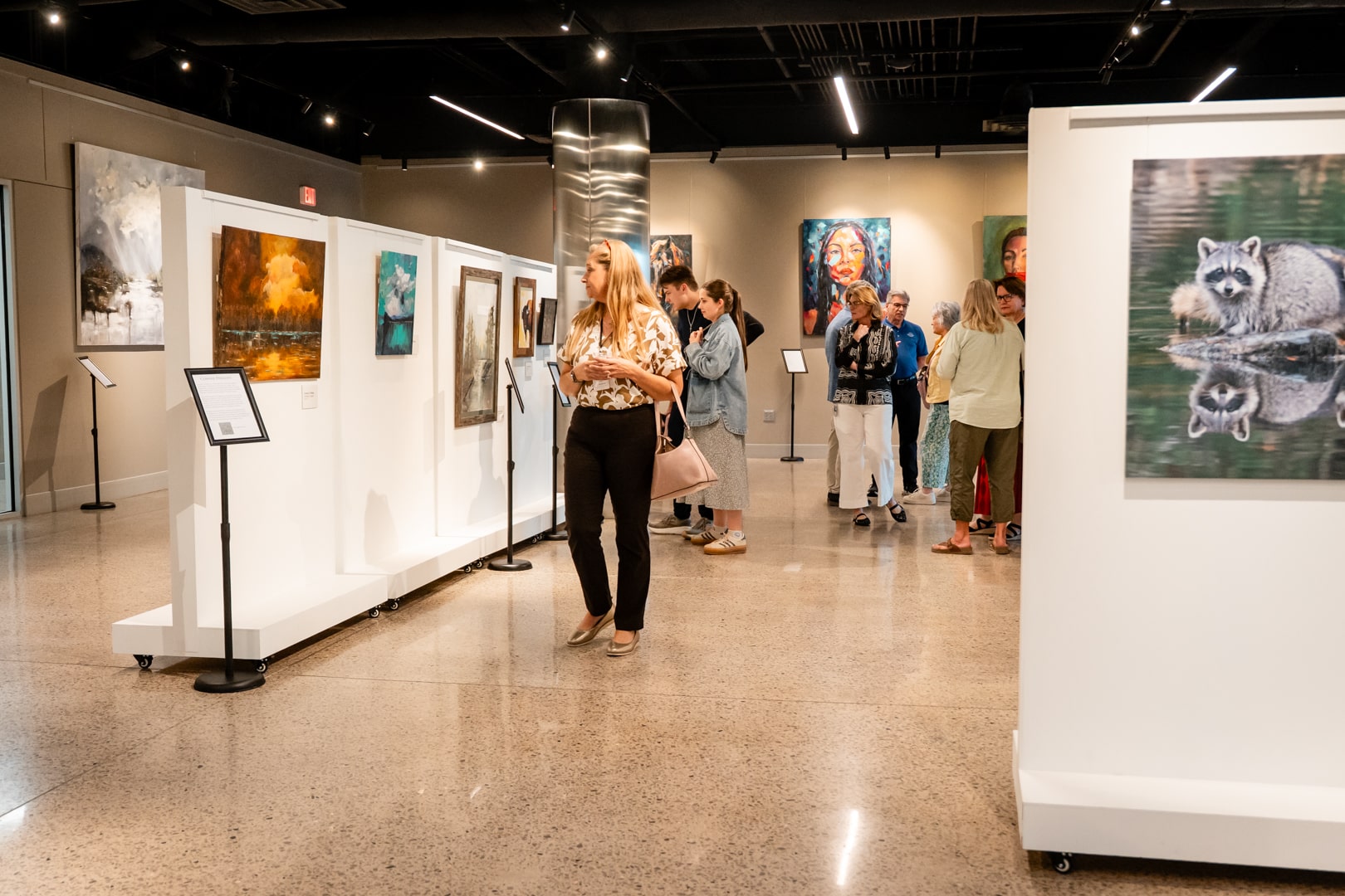 Attendees gathered in the Brenda and Anthony Altman Gallery to experience a vibrant collection of more than 70 works created by Choctaw artists. The exhibition, presented in collaboration with Choctaw Nation Public Arts, showcases both traditional and contemporary pieces that reflect the rich heritage, storytelling, and artistic expression of Choctaw culture.
